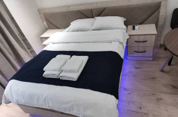 ქუთაისში, ქირავდება დღიურად, სასტუმროს ტიპის 2 ოთახიანი (1 საძინებლით 40 კვ. მეტრის) ბინა თანამედროვე ავეჯით და ყველანაირი ტექნიკით. კონდიციონერით, ცენტრალური გათბობით, პლაზმური ტელევიზორით WIFI ინტერნეტით და SILK TV-ის ტელევიზიით. მუდმივად ახალი თეთრეულით, პირსახოცებით და სამზარეულოს ყველა საჭირო ნივთით. ბინაში საცხოვრებლად შექმნილია იდეალური გარემო და სისუფთავე.