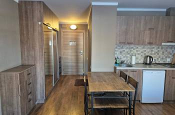 ქირავდება ბაკურიანში სტუდიოს ტიპის კეთილმოწყობილი ბინა, ყველა საჭირო ინვენტარით, სასტუმრო კომპლექს ორბი პალასში. აპარტამენტი გათვლილაი 2+2 სტუმარზე. ადგილზე დაგხვდებათ ორადგილიანი საწოლი და ორი ცალი გასაშლელი სავარძელი, უფასო WiFi, ტელევიზორი, ცენტრალური გათბობა, სამზარეულო. კომპლექსში ფუნქციონირებს აუზი, რესტორანი. ახლოს არის დიდველთან. ფუნქციონირებს 24 საათიანი დაცვა.