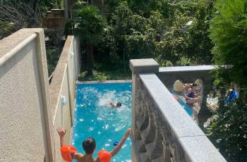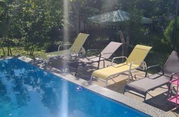 ქირავდება დღიურად ახალაშენებული ორსართულიანი სახლი აუზით. . ასევე ამ სივრცეში დგას 120 კვ.მ დამოუკიდებელი შენობა(მისაღები,კლუბი,ჰოლი)ევრო რემონტით, ცენტრალური გათბობით, ვერანდით(30 კვ.მ) პარკინგით და კარგი ხედით. ტექნიკა: სარეცხი მანქანა, ჭუჭუჭის სარეცხი მანქანა, მძლავრი ,,დინამიკი,, ეზოს განათება ,,გირლანდები,. დიდი და პატარა მაყალი(გრილი) შამფურები. ადგილზე დაგხვდებათ ყველა საჭირო ინვენტარი ნებისმიერი სახის წვეულებისთვის: დაბადებისდღე, კორპორატიული, ქორწილი და ა.შ ფასი იცვლება დღეების და რაოდენობის მიხედვით.