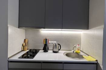 ბინა არის სტუდიოს ტიპის, გათვლილი 8 ადამიანზე.